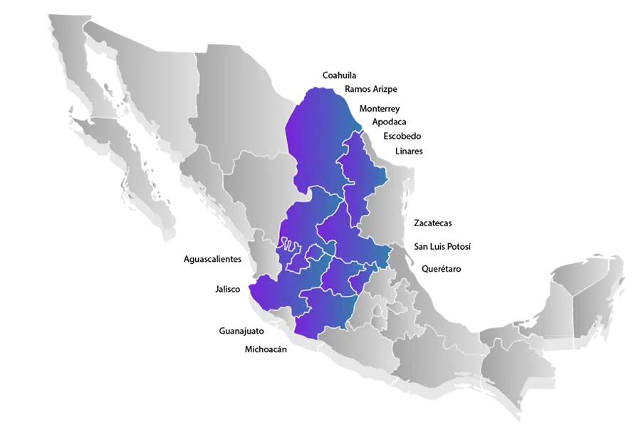 • Norte del PaÃs: Nuevo León, Chihuahua, Sonora, Sinaloa, Baja California Norte,Coahuila, Saltillo.